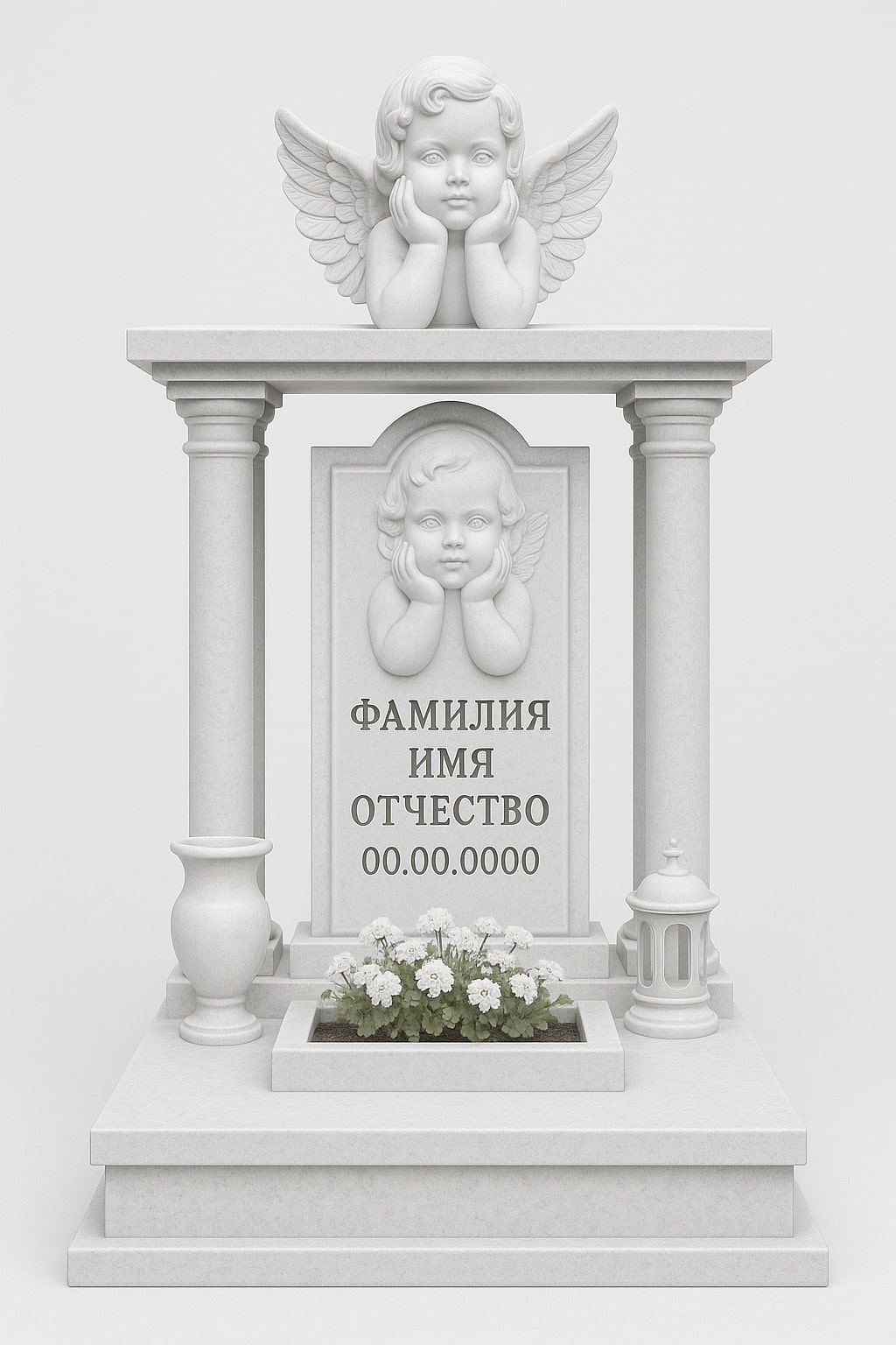 Светлый памятник из Мансуровского гранита создан с особым трепетом, чтобы увековечить память о самом дорогом. В композиции предусмотрено место под фотографию и надпись с ФИО и датами, выполненная гравировкой или золотой краской — по выбору заказчика.